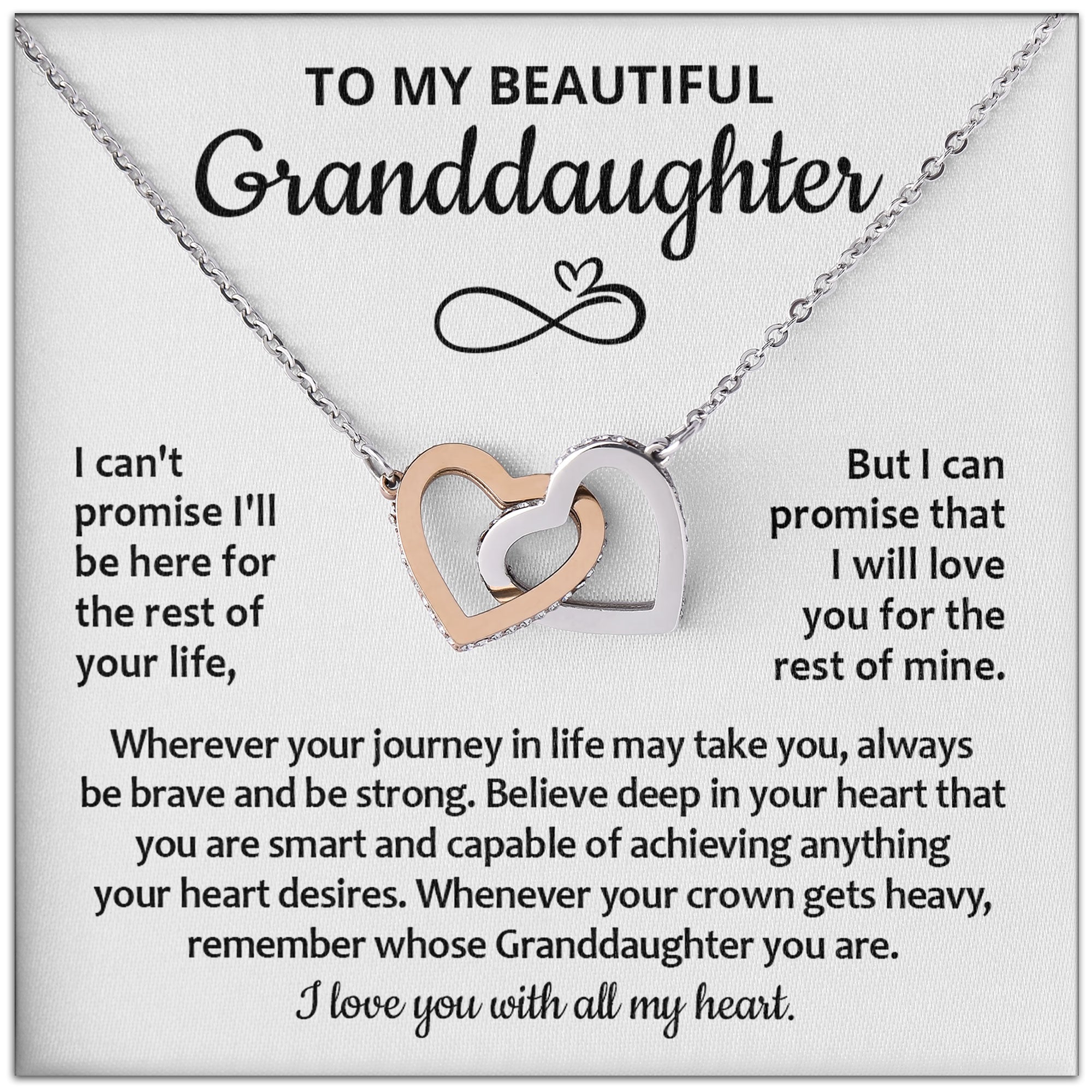 To My Granddaughter Necklace, Granddaughter Gifts From Grandma Grandmother Or Grandpa Grandfather, Jewelry Gifts For Granddaughter Birthday, Graduation, Interlocking Heart Necklace For Granddaughter